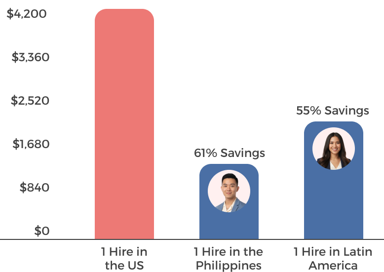 Access skilled bookkeepers in Latin America and the Philippines for up to 70% less than U.S. hiring costs, without sacrificing quality or compliance.